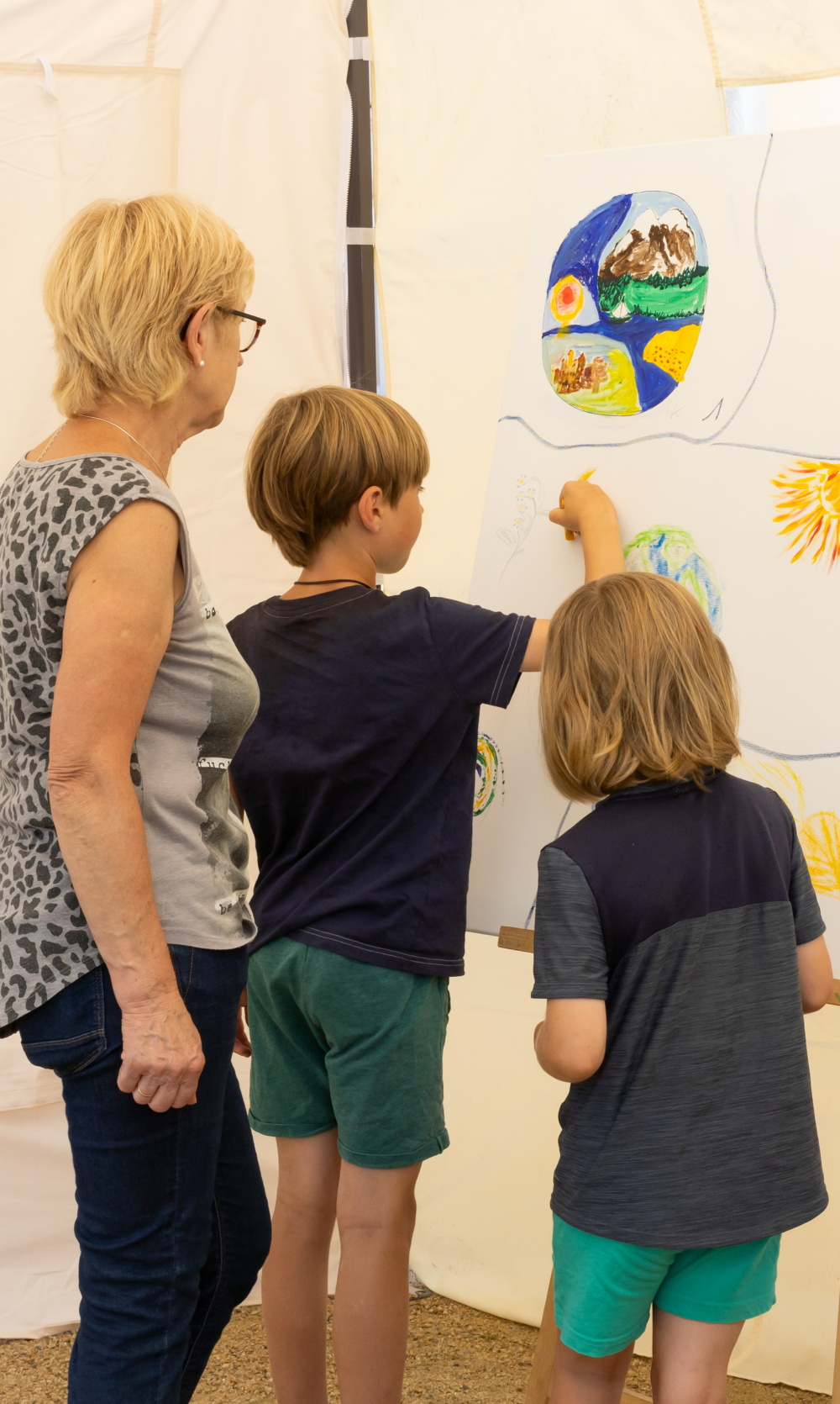 In künstlerisch offenen Aktionen auf Straßen, Plätzen und in Gärten – darunter der Schlossplatz von Caputh und ein ortshistorischer Biergarten am See – wurde Kunst bewusst in den öffentlichen Raum verlagert. Jung und Alt konnten sich spontan beteiligen oder zuschauen. Die Formate reichten von Impro-Theater, Lesungen und Hörgeschichten über Ausstellungsinstallationen bis hin zu Bildender Kunst. Besucher:innen wurden ausdrücklich ermutigt, mitzuwirken, eigene Perspektiven einzubringen und Teil des künstlerischen Prozesses zu werden.
